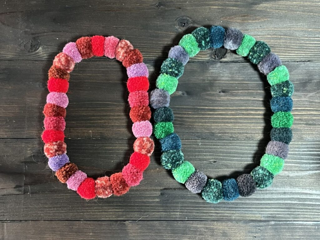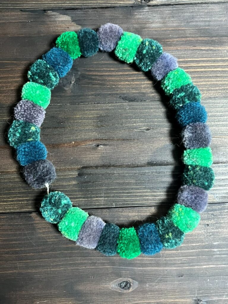 今回は、直径3cmほどの小さなぽんぽんをつないで作るネックレスの紹介です。