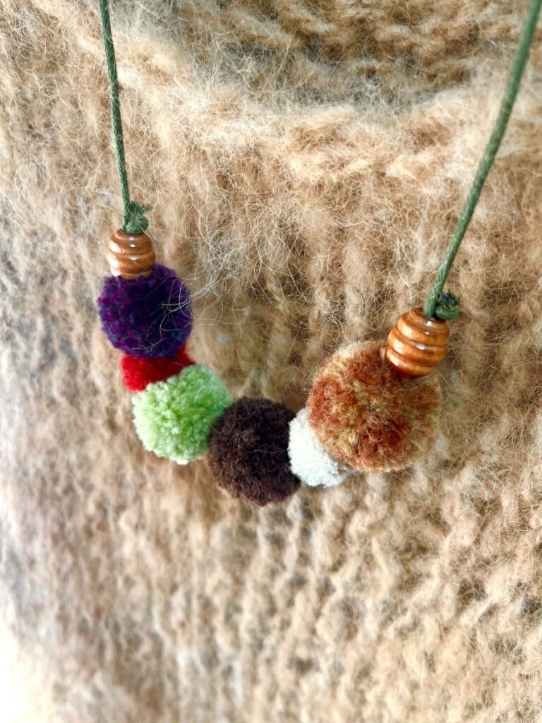 冬の装いのアクセントに、あったかいぽんぽんネックレス